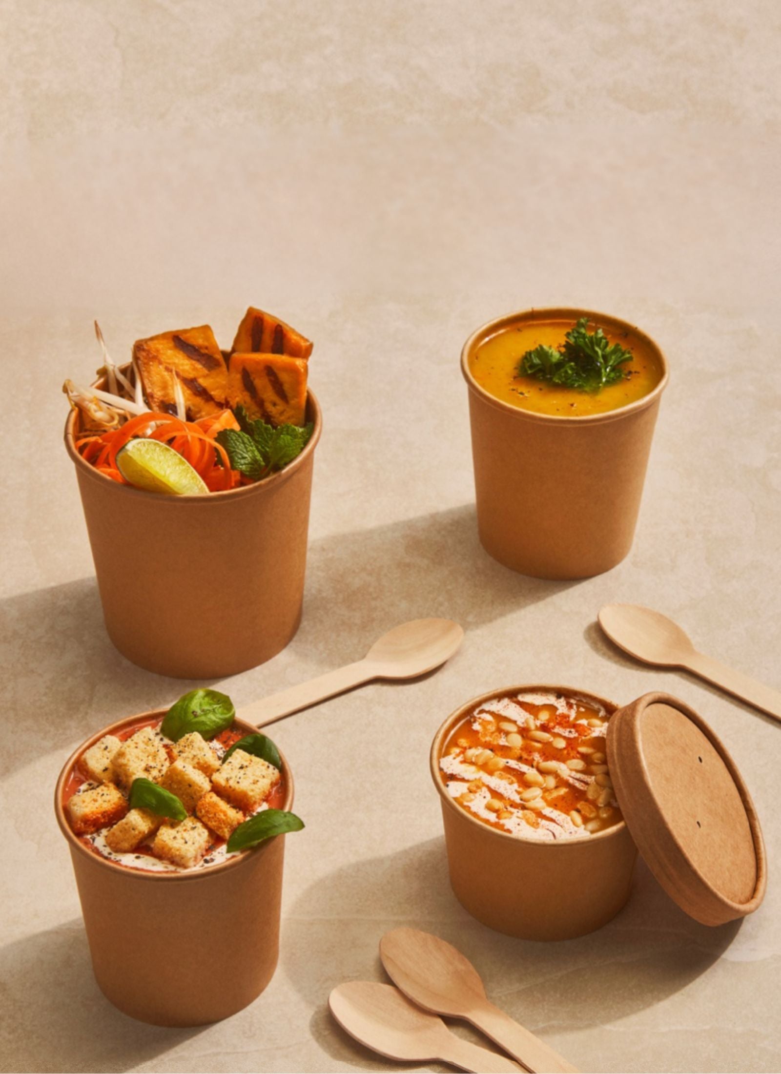 Our bowls are ideal for liquid foods, whether hot or cold, from soups and stews to noodle dishes. Crafted with durability in mind, these kraft paper containers are coated with a water-based solution, certified recyclable and compostable.