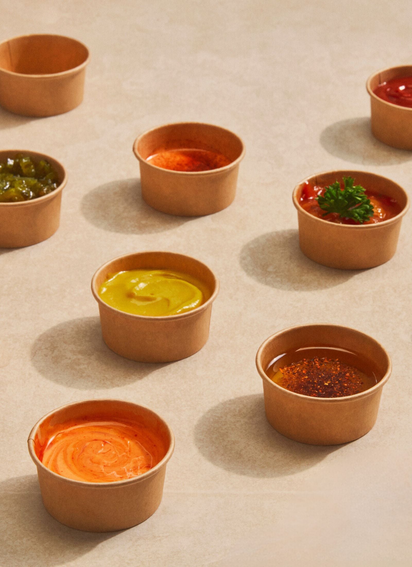 Serve sauces and condiments in our 2-oz Kraft Sauce Cups. Ideal for any food service setting.
